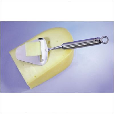 12738 The sharp blade edge above the narrow gap facilitates fine slicing of cheese which best brings out the flavor of hard cheeses. Features: -Hanging hook -Suitable for both right and left handers -Sharp blade edge Specifications: -Total Length: 9.4'' -Handle Length: 3.9'' -Material: Stainless steel