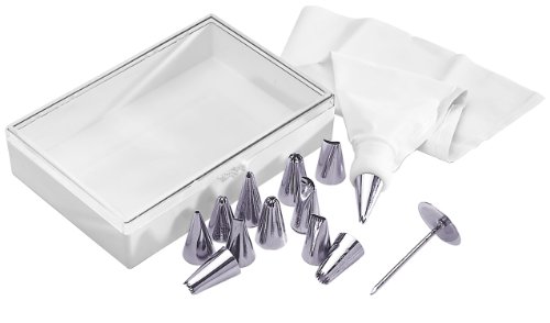- Set includes 1 icing bag, 1 storage case, and 12 different stainless-steel tips